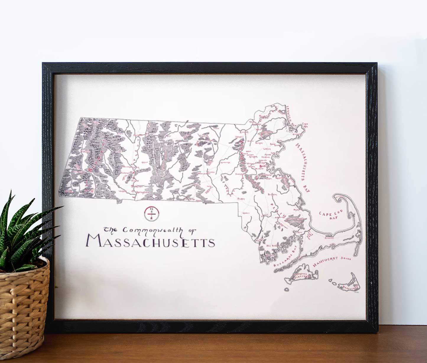 Note from the Artist: Personally, I prefer to hang my art without any sort of glass insert. While the glass prevents damage, I think it introduces a glare that I want to avoid. Without glass, you can take pictures of your map in direct sunlight glare free!