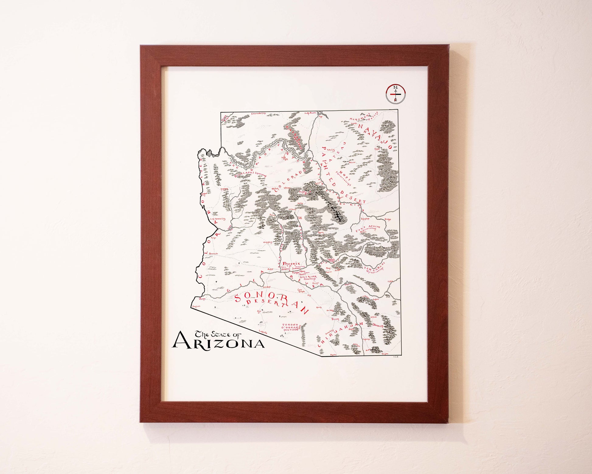 Note from the Artist: Personally, I prefer to hang my art without any sort of glass insert. While the glass prevents damage, I think it introduces a glare that I want to avoid. Without glass, you can take pictures of your map in direct sunlight glare free!