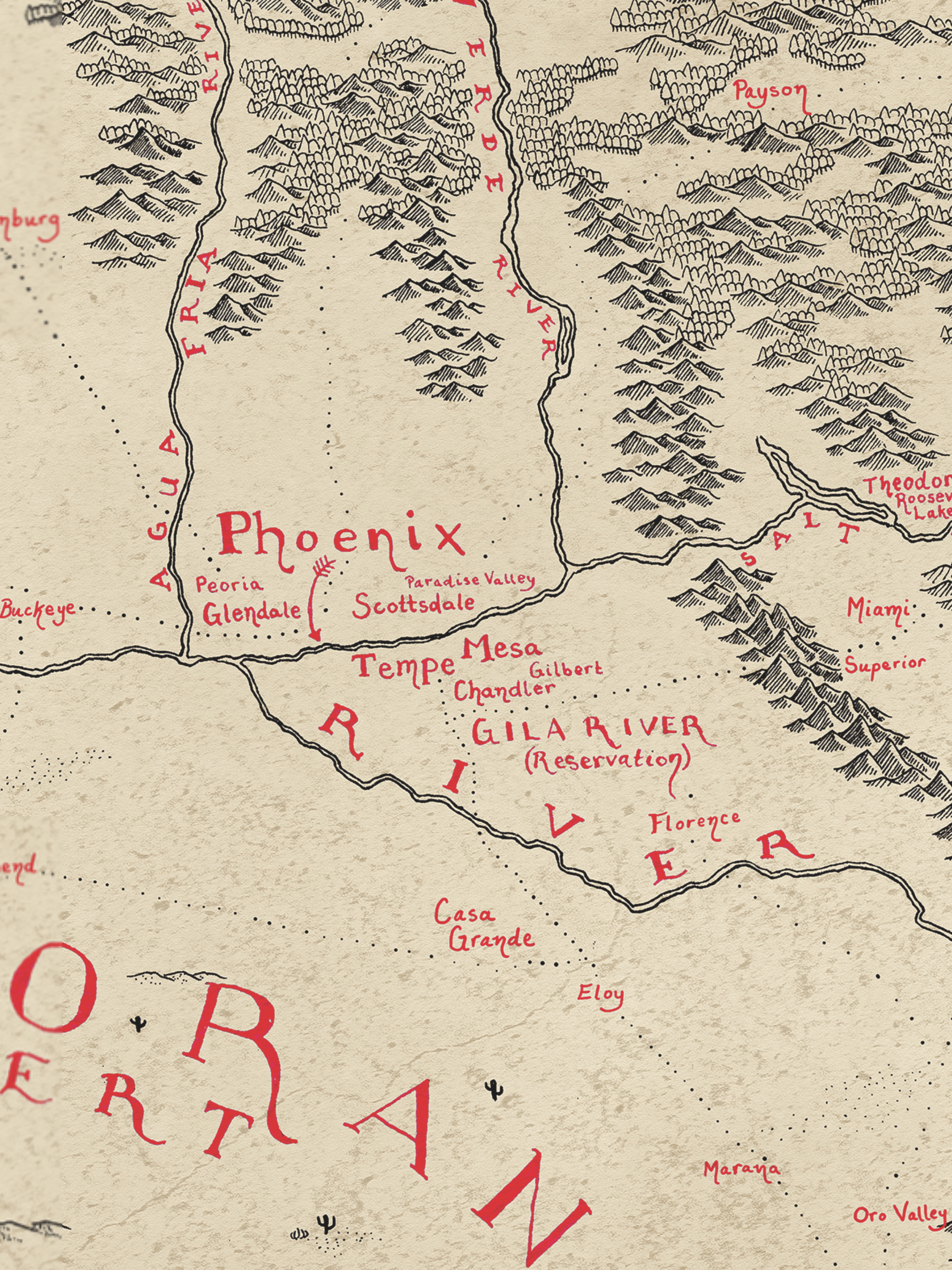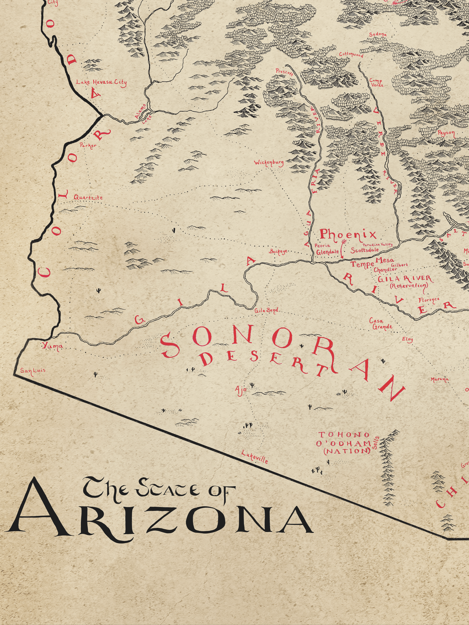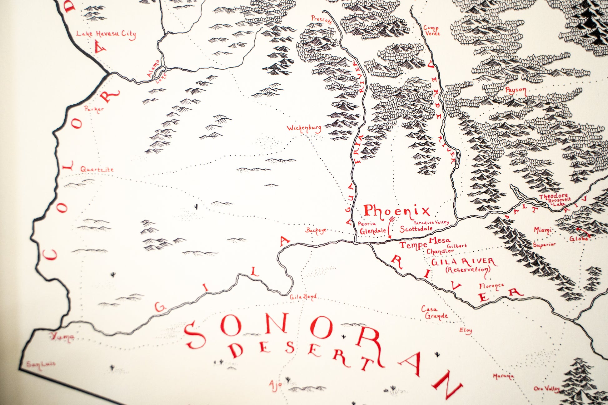 High quality print of my hand-drawn map. It’s printed on heavy paper (think card-stock but thinner). This thing is hand-drawn, so I wouldn’t recommend it for navigating cities or hiking trails....or really anything except wandering.