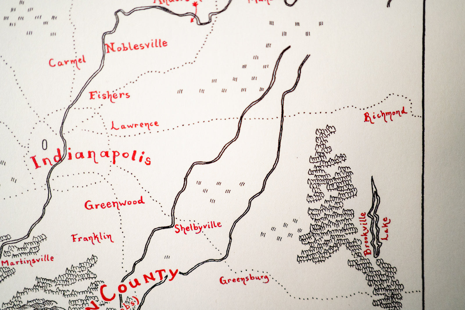 Note from the Artist: Personally, I prefer to hang my art without any sort of glass insert. While the glass prevents damage, I think it introduces a glare that I want to avoid. Without glass, you can take pictures of your map in direct sunlight glare free!