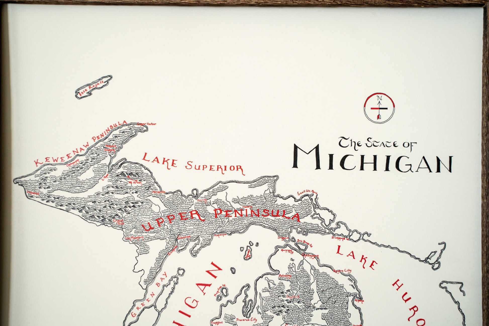 Note from the Artist: Personally, I prefer to hang my art without any sort of glass insert. While the glass prevents damage, I think it introduces a glare that I want to avoid. Without glass, you can take pictures of your map in direct sunlight glare free!