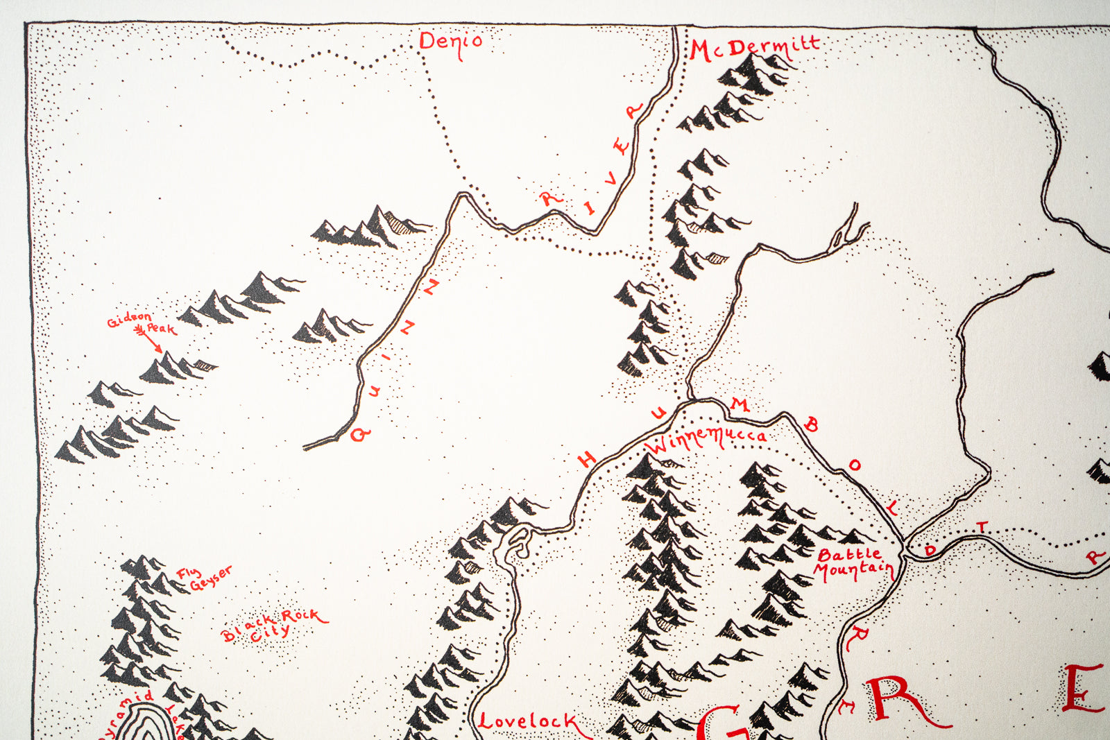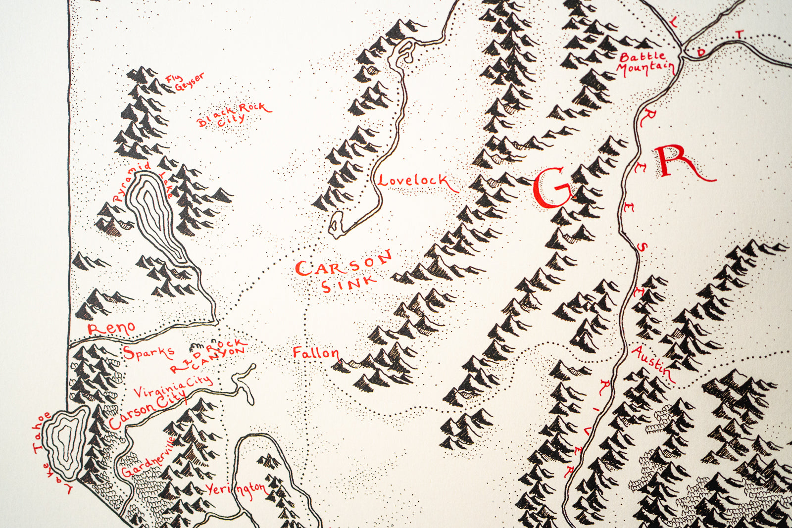 High quality print of my hand-drawn map. It’s printed on heavy paper (think card-stock but thinner). This thing is hand-drawn, so I wouldn’t recommend it for navigating cities or hiking trails....or really anything except wandering.