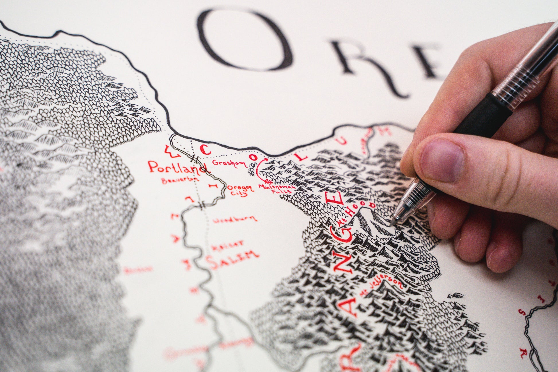 High quality print of my hand-drawn map. It’s printed on heavy paper (think card-stock but thinner). This thing is hand-drawn, so I wouldn’t recommend it for navigating cities or hiking trails....or really anything except wandering.