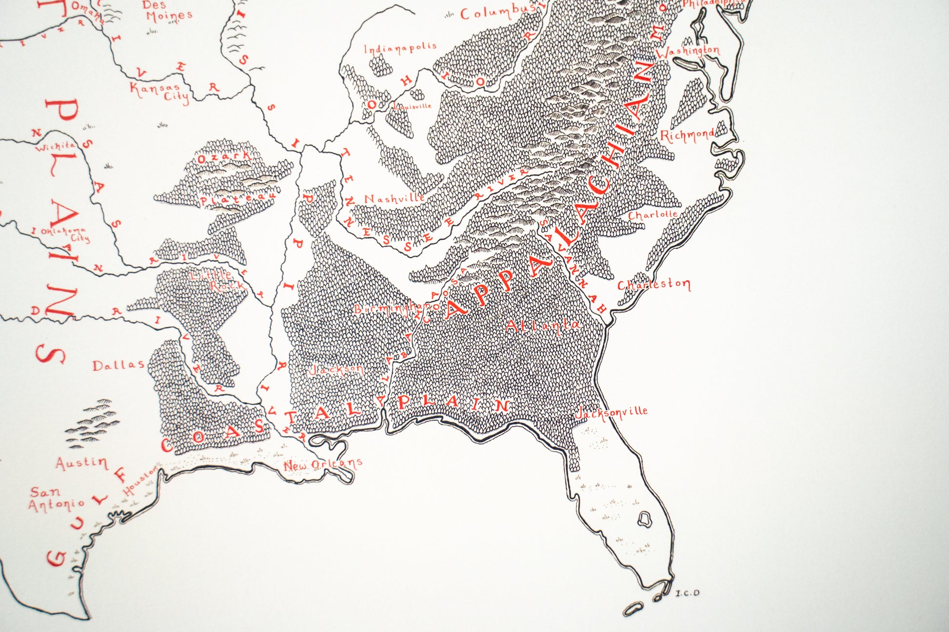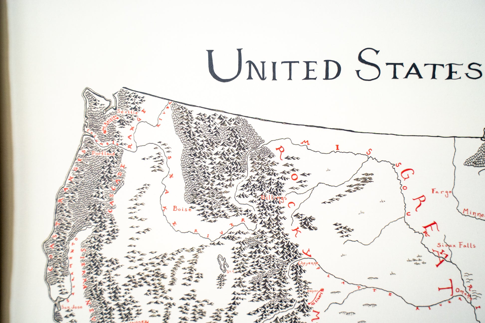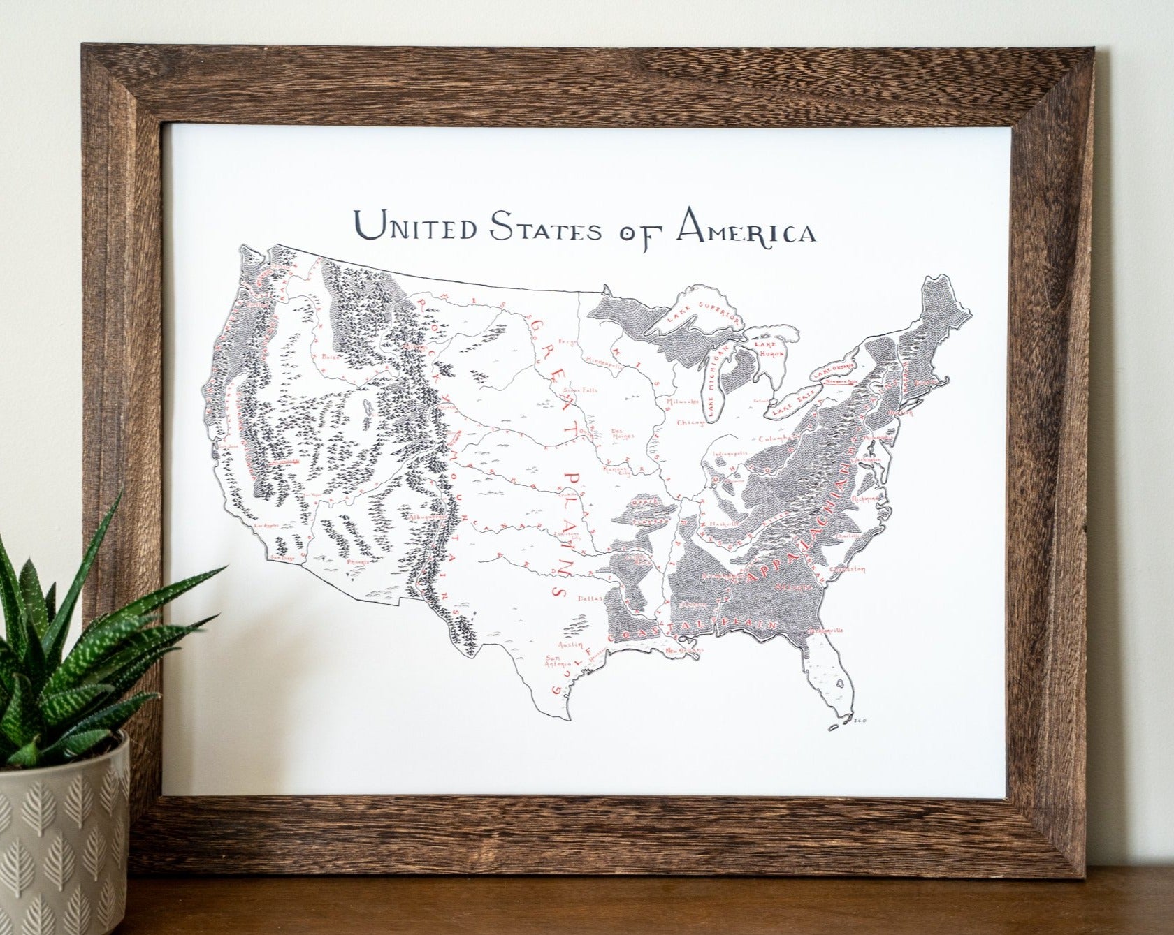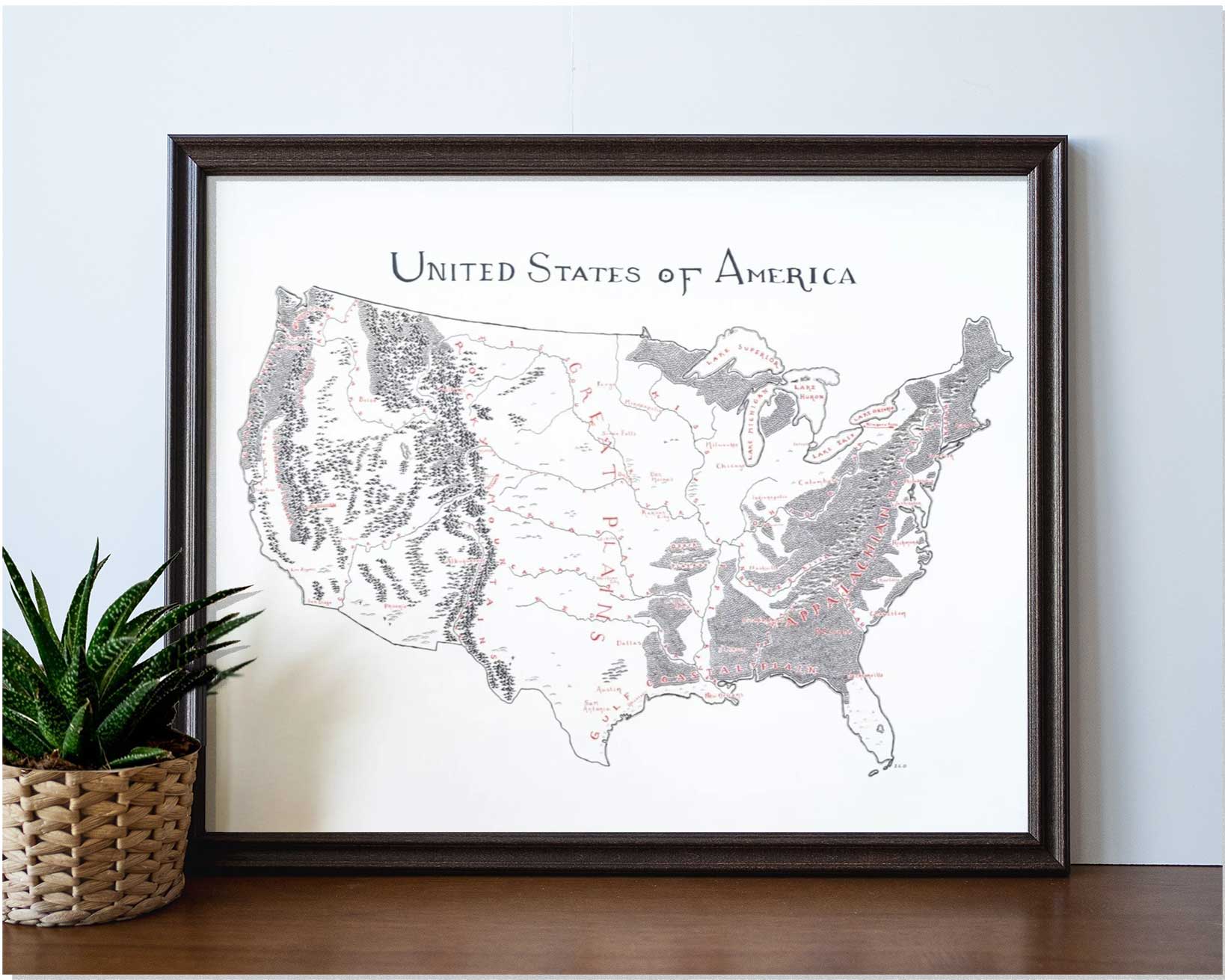 I love the US and feel like I have a greater appreciation for this place after drawing it. Majestic mountains to the West and dense forests to the East. This map captures a taste of the magic the USA holds. Pin it up on your wall, or hang it in your office and you'll never forget.