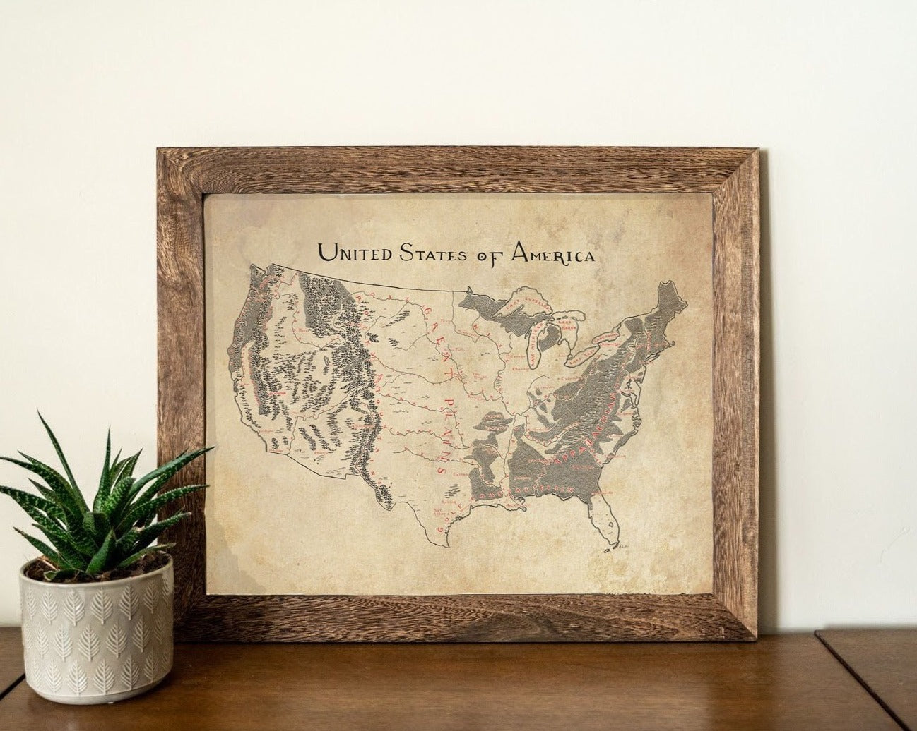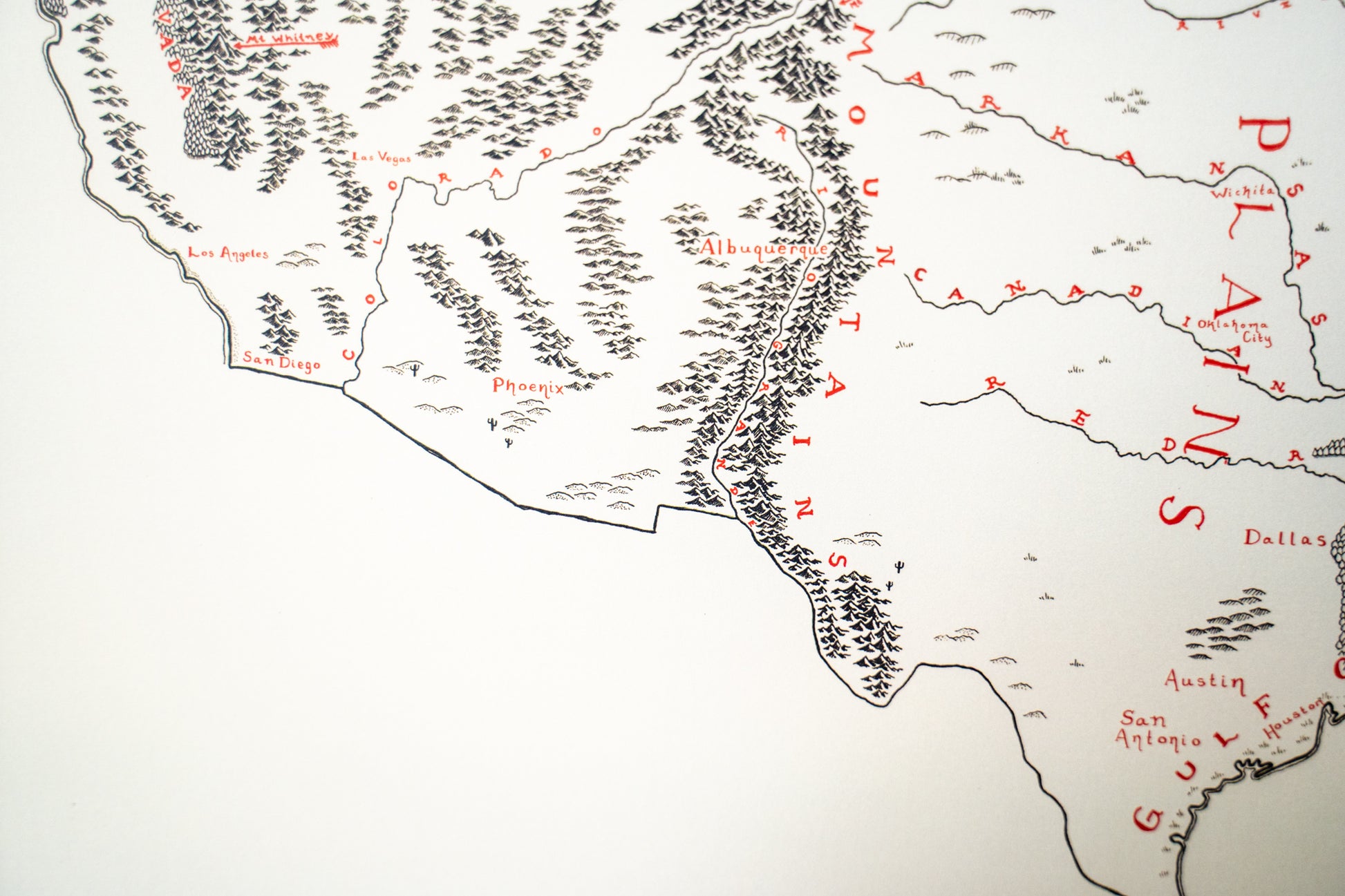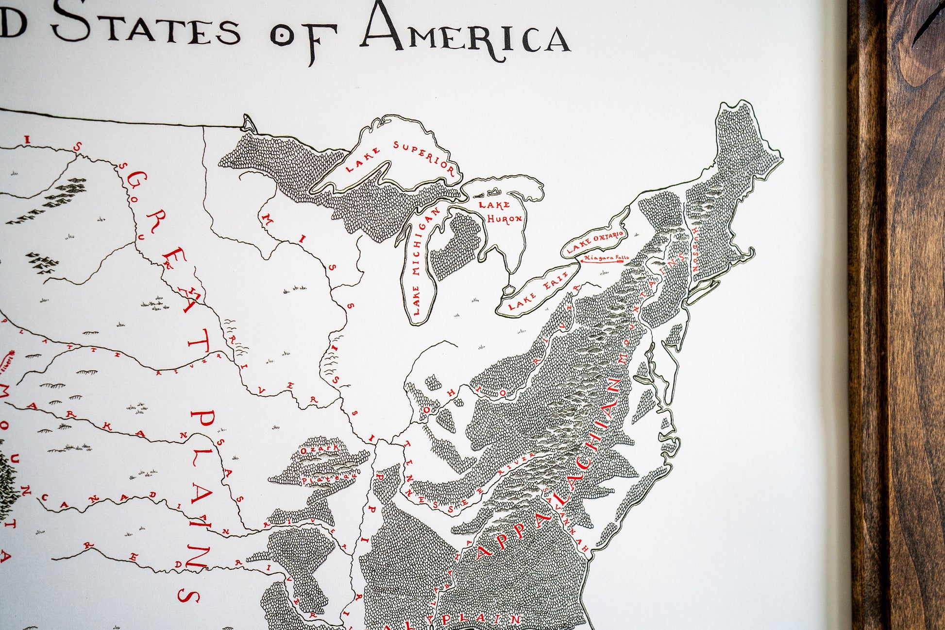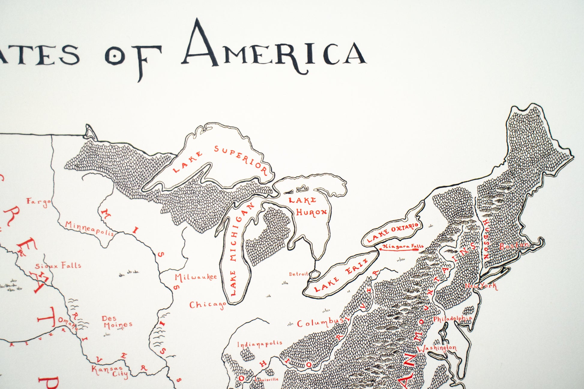 I love the US and feel like I have a greater appreciation for this place after drawing it. Majestic mountains to the West and dense forests to the East. This map captures a taste of the magic the USA holds. Pin it up on your wall, or hang it in your office and you'll never forget.
