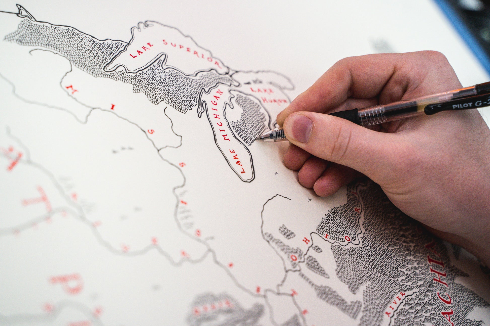 High quality print of my hand-drawn map. It’s printed on heavy paper (think card-stock but thinner). This thing is hand-drawn, so I wouldn’t recommend it for navigating cities or hiking trails....or really anything except wandering.