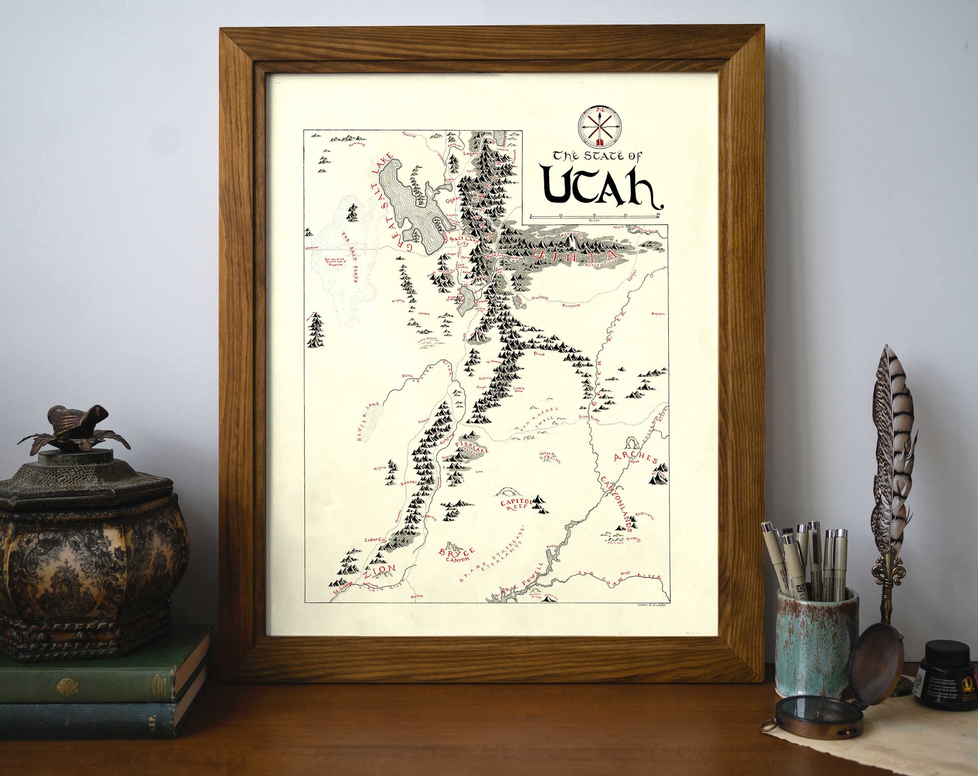 Note from the Artist: Personally, I prefer to hang my art without any sort of glass insert. While the glass prevents damage, I think it introduces a glare that I want to avoid. Without glass, you can take pictures of your map in direct sunlight glare free!
