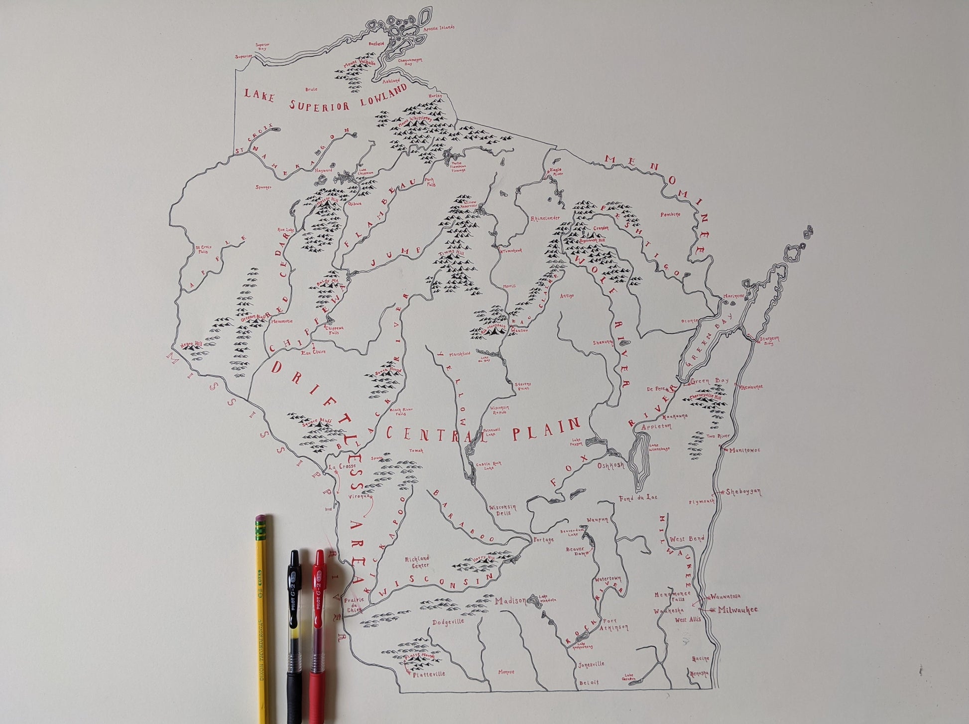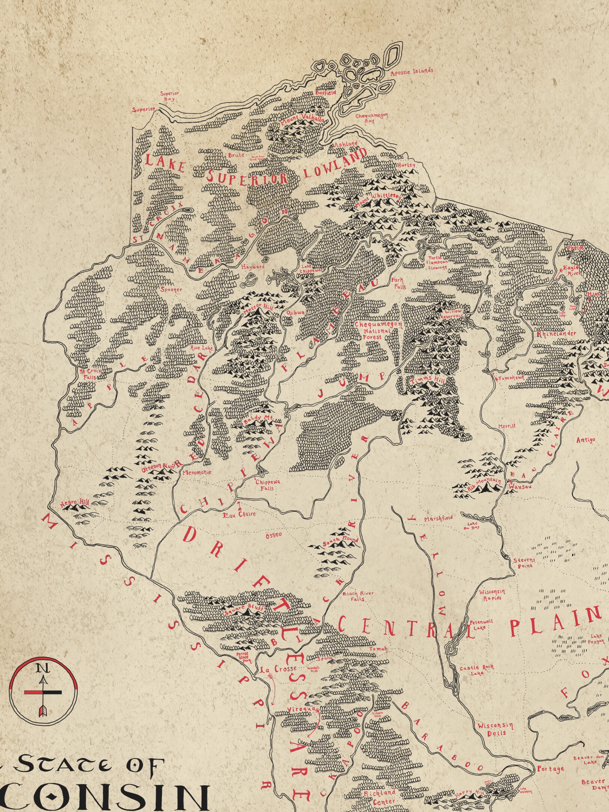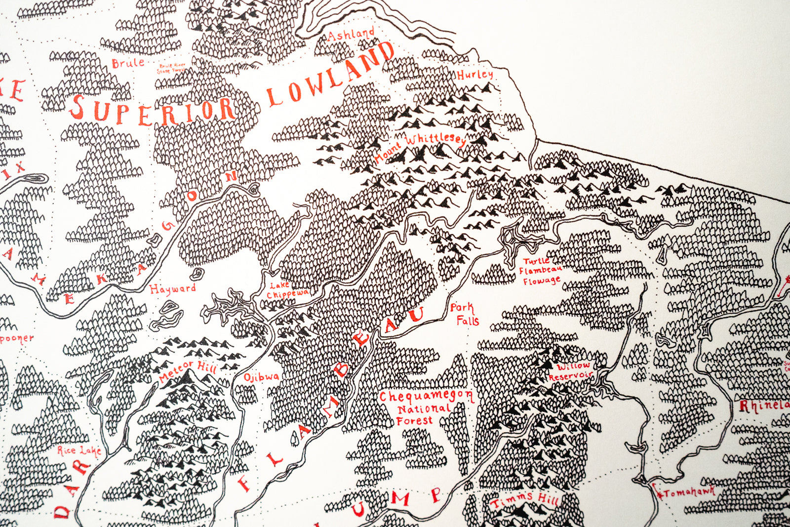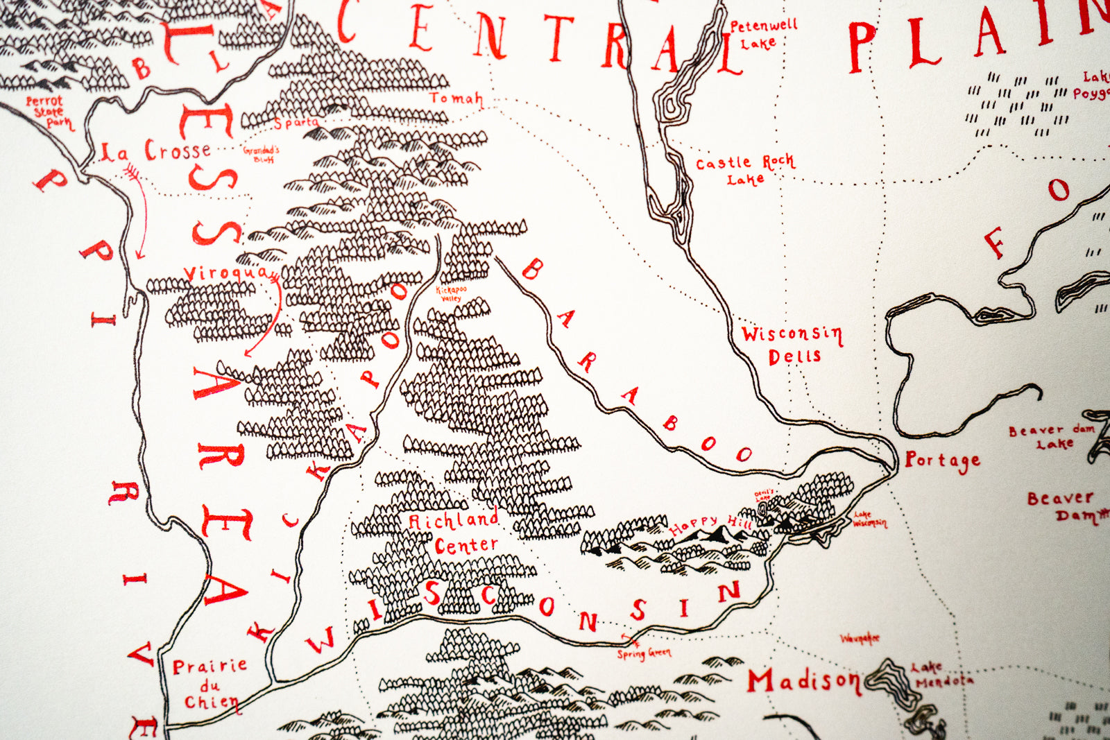 High quality print of my hand-drawn map. It’s printed on heavy paper (think card-stock but thinner). This thing is hand-drawn, so I wouldn’t recommend it for navigating cities or hiking trails....or really anything except wandering.