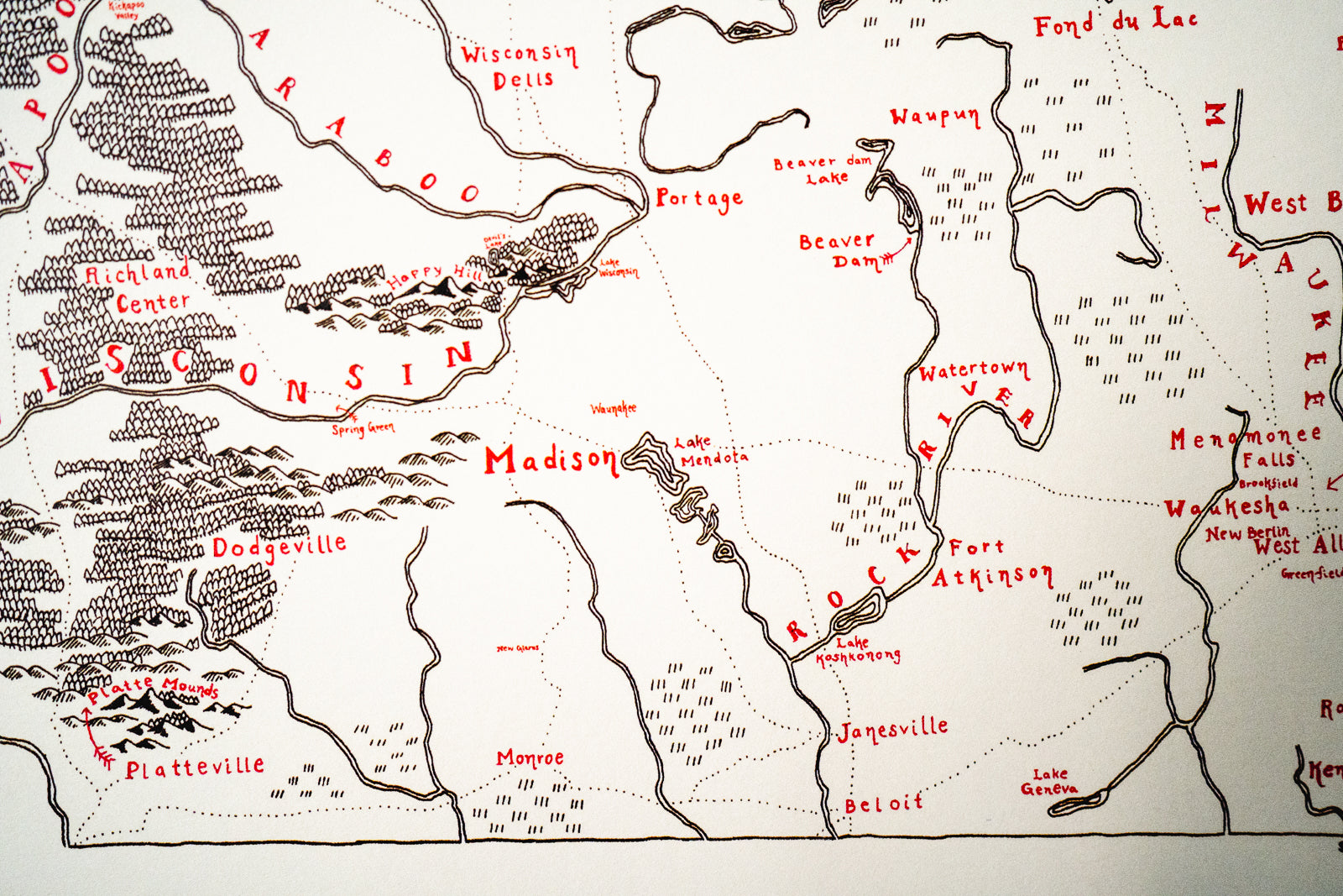 Note from the Artist: Personally, I prefer to hang my art without any sort of glass insert. While the glass prevents damage, I think it introduces a glare that I want to avoid. Without glass, you can take pictures of your map in direct sunlight glare free!